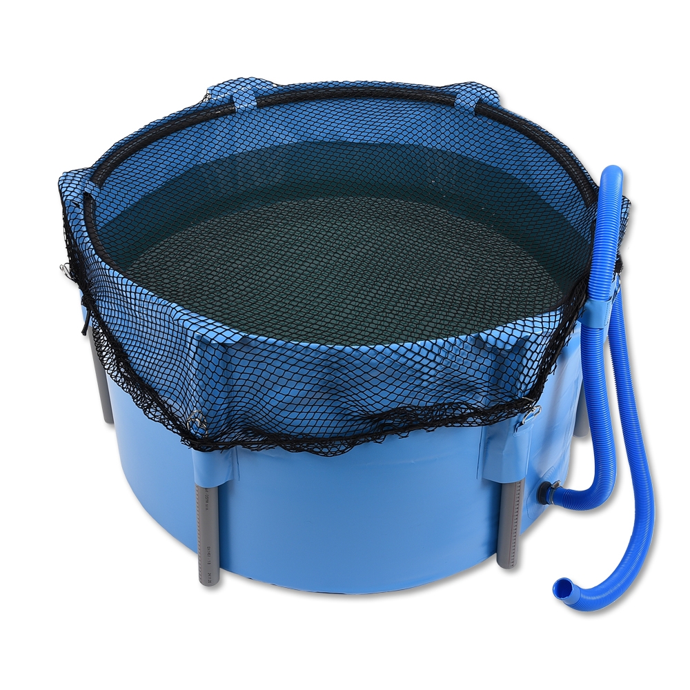 Aan de buitenkant van het opvouwbare bassin bevinden zich haken voor het eenvoudig bevestigen van het meegeleverde afdeknet.