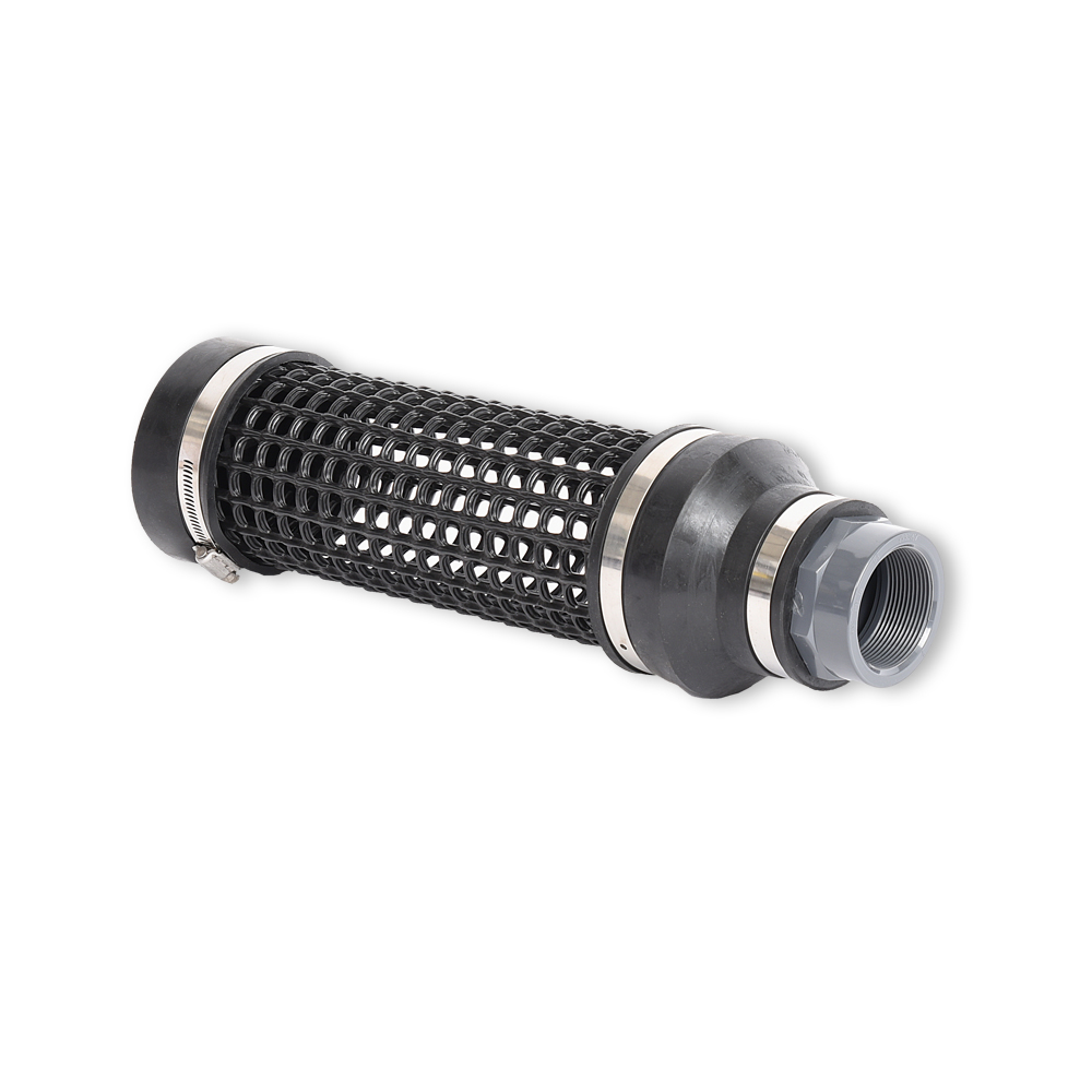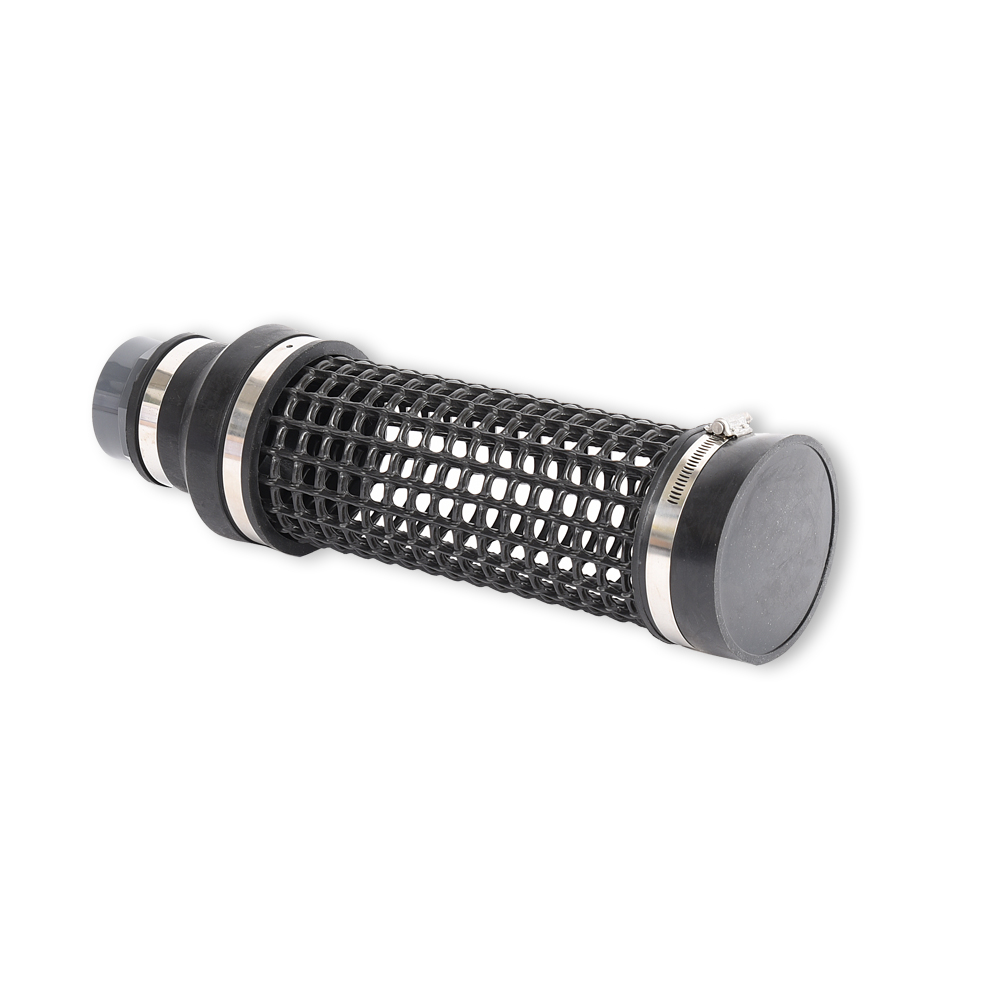 Door de gatgrootte van 10 - 12 mm kan de filterzeefbuis niet verstopt raken en biedt deze voldoende veiligheid om te voorkomen dat de onderliggende pomp droogloopt.