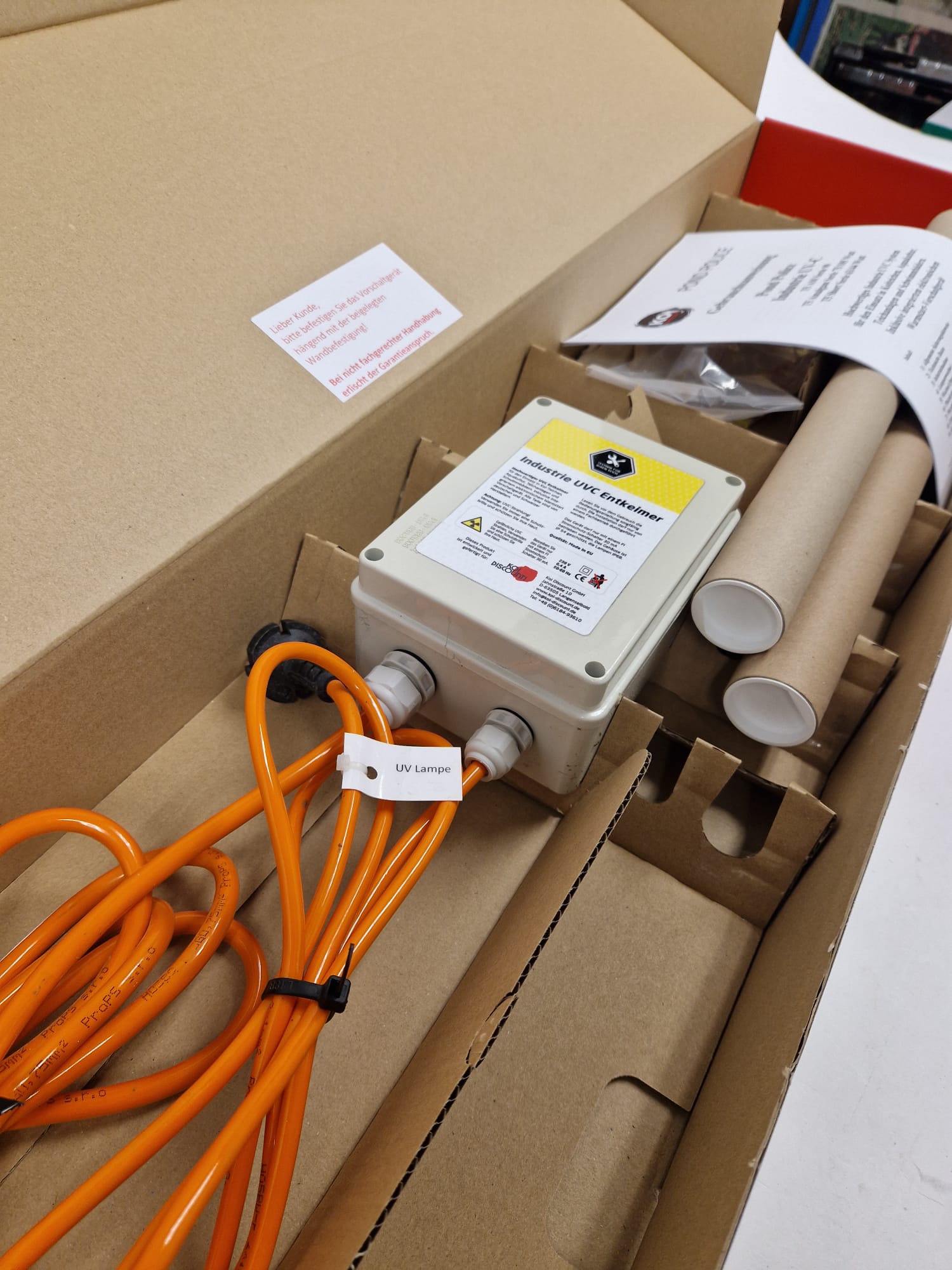 Deze industriële UV-C is voor ons ontwikkeld en geproduceerd. Alle onderdelen zijn afkomstig van Duitse en Zwitserse fabrikanten, de productie vindt plaats in Tsjechië. Alle componenten zijn uitsluitend afkomstig uit de primaire productie in de EU.