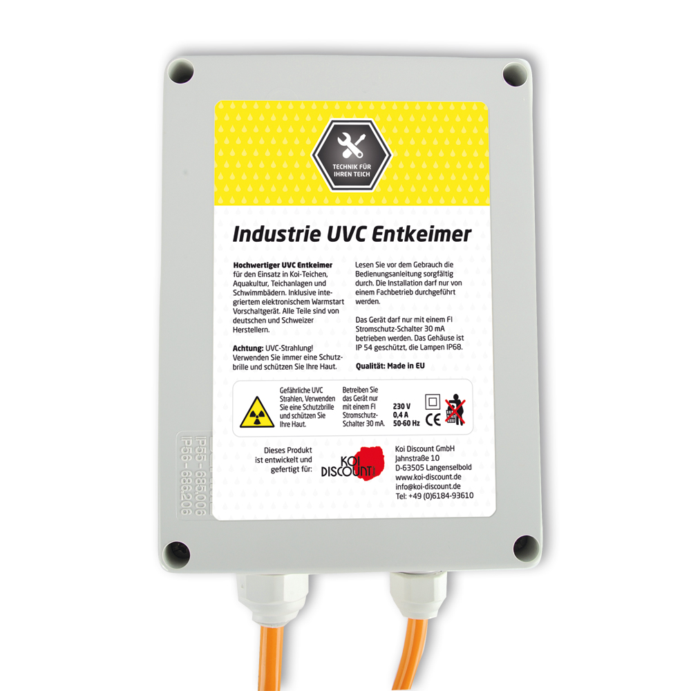 Het elektronische hoogspanningssysteem herkent welke lamp u hebt gebruikt. Zo kunt u indien nodig het lampvermogen eenvoudig verhogen of verlagen door alleen de lamp te vervangen. Het apparaat is geschikt voor verschillende lampsterktes. Deze industriële UVC heeft een aanzienlijk breder spectrum dan een normale UVC. Dit komt tot uiting in de duurzaamheid van de lampen, die pas na 16.000 uur hoeven te worden vervangen.