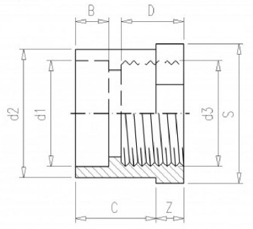 | (d2) Buitendiameter links | (d3) Binnendiameter rechts | Z | C | S | D |