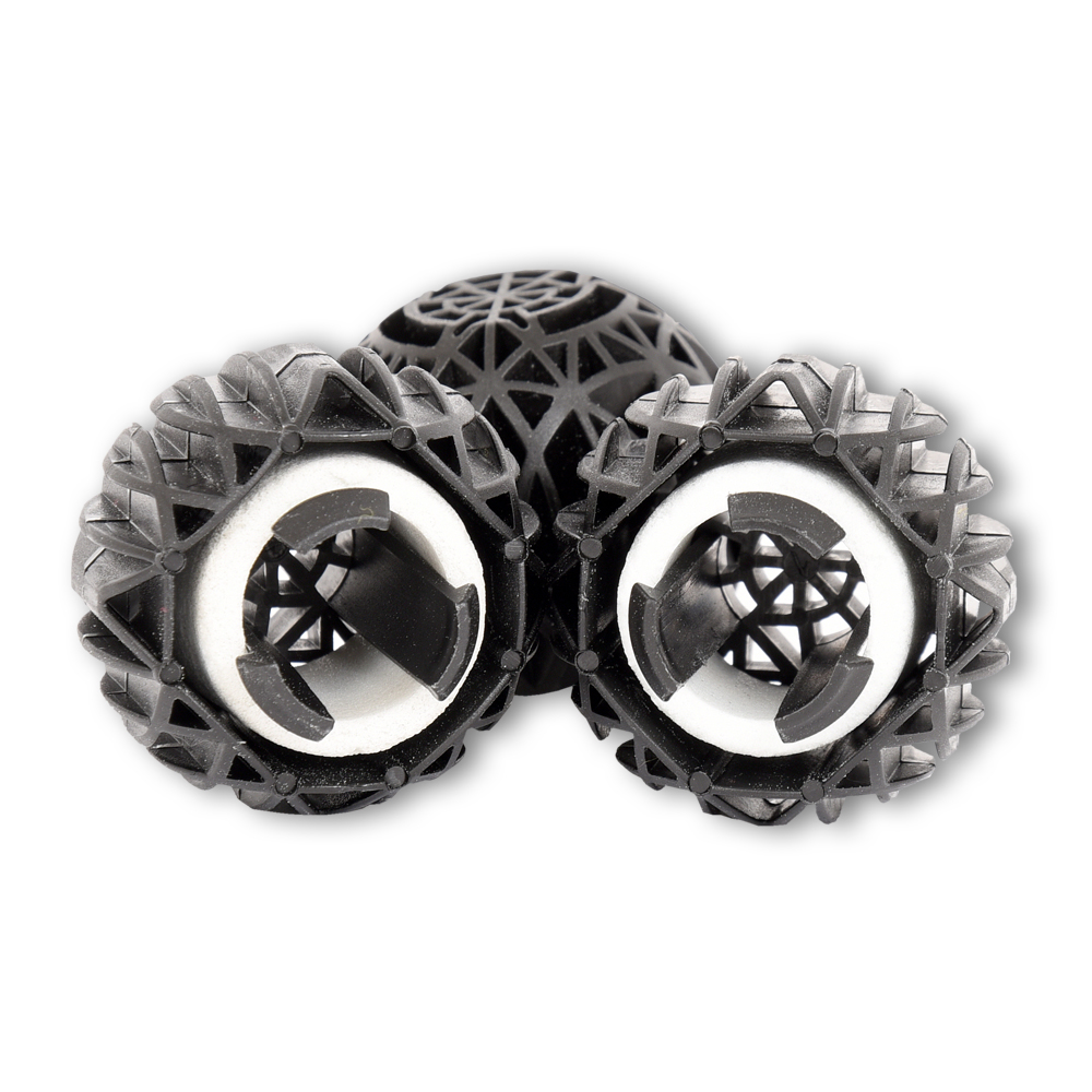 sera siporax pond protect Professional is het biologische filtermedium met een tegen slijtage beschermende Protect-Ball, dat speciaal is ontwikkeld voor gebruik in filterinstallaties met sterke waterbeweging. De buitenste schil beschermt de binnenste siporax-ring en leidt de waterstroom rechtstreeks naar deze ring. Zo wordt de gesinterde glasring nog effectiever doorstroomd en wordt de nitrificatiecapaciteit van de filterbacteriën verhoogd door een maximale zuurstoftoevoer.