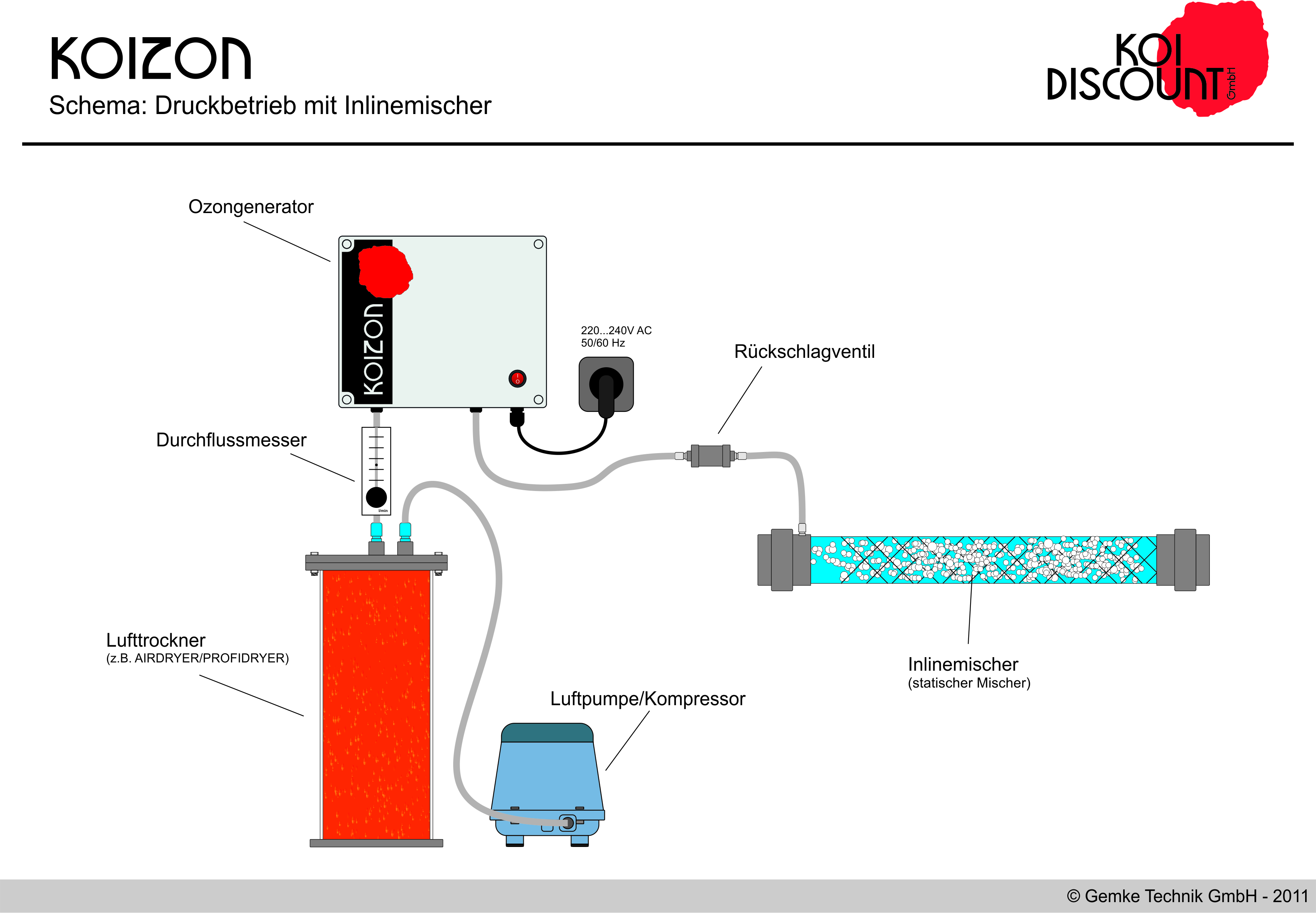 Voer ozon eenvoudigweg in de toevoerleiding naar uw water in. Ideaal bij weinig ruimte.