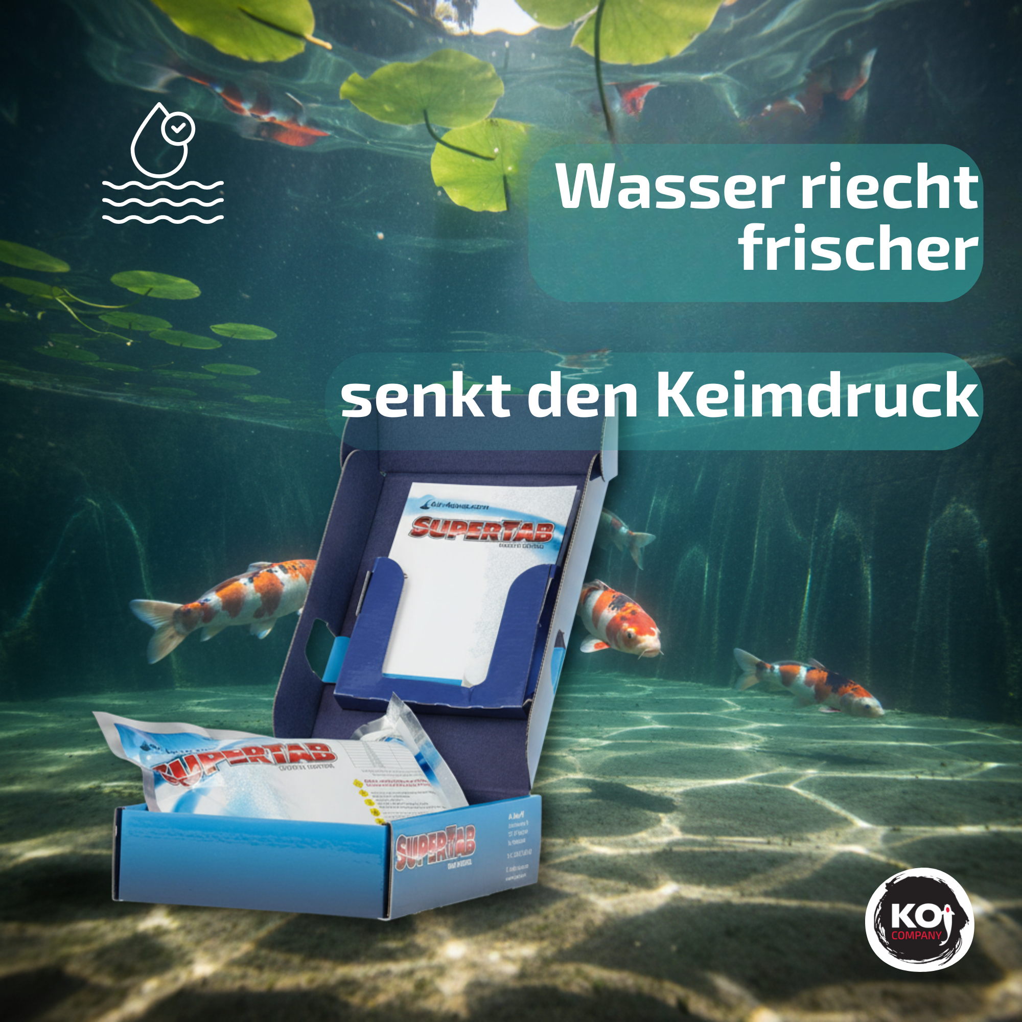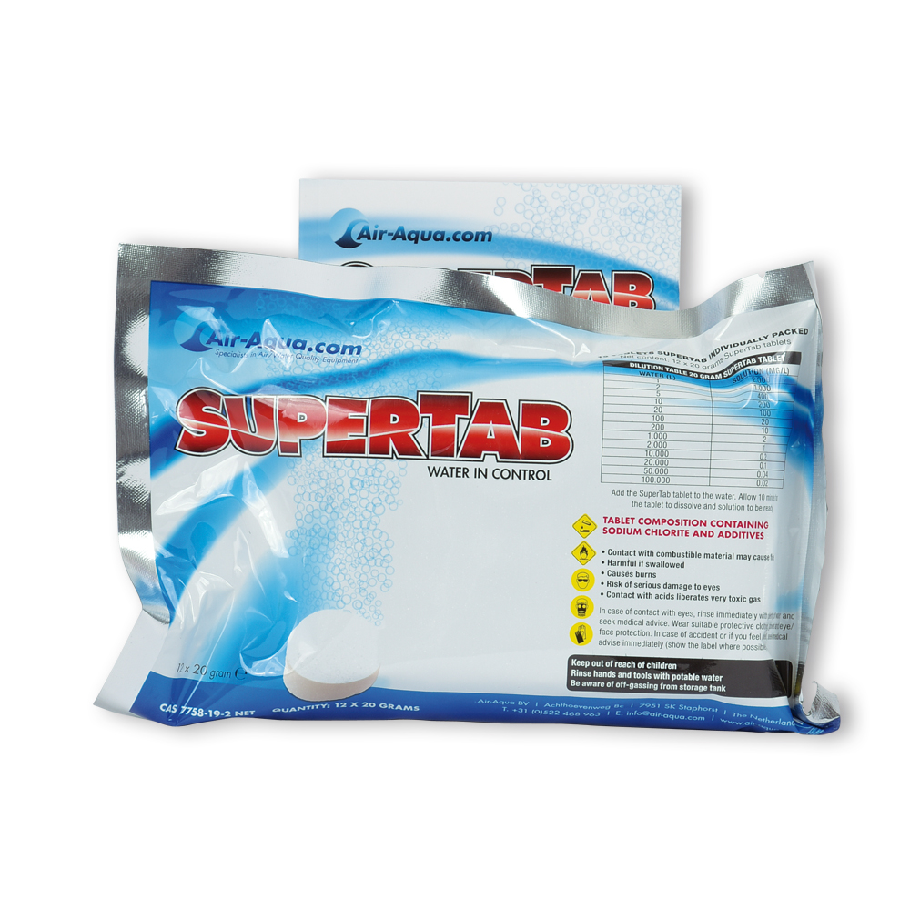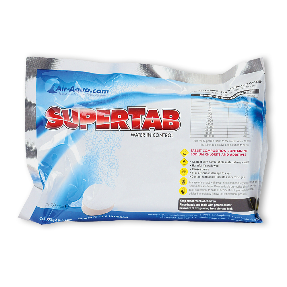 SuperTab bevat het oxidatiemiddel chloordioxide (CLO2) in tabletvorm. Dit is een volledig nieuwe ontwikkeling, die het gebruik van dit product zeer eenvoudig maakt. Chloordioxide (niet te verwarren met chloor!) is een relatief zwak oxidatiemiddel. Daarom mag het in bepaalde concentraties vrij worden gebruikt in zowel drinkwater als in vijvers of bassins die worden bewoond door levende dieren/organismen. Chloordioxide is al bijna 200 jaar bekend. Het werd in 1814 ontdekt door Humphrey Davy. Dit unieke oxidatiemiddel kan al bij zeer lage concentraties uiterst effectief worden ingezet tegen virussen, schimmels en ziekteverwekkende bacteriën. Anaërobe bacteriën kunnen geen resistentie tegen chloordioxide opbouwen, omdat hun celstructuur wordt vernietigd. Chloordioxide is een zeer selectief oxidatiemiddel en reageert vooral met organische stoffen. Het produceert geen (schadelijke) restproducten. Na gebruik blijft slechts een zeer kleine hoeveelheid chloride (zoals keukenzout) achter. Chloordioxide is in lage concentraties in water reukloos, in tegenstelling tot bijvoorbeeld chloor. Het grootste voordeel van chloordioxide ten opzichte van andere oxidatiemiddelen (waterstofperoxide, ozon en chloor) is zijn lage oxidatiekracht in combinatie met een hoog oxidatievermogen. Chloordioxide wordt vaak gebruikt bij de productie van drinkwater, de verwerking en opslag van levensmiddelen, in de fruitteelt en in de vleesverwerkende industrie.