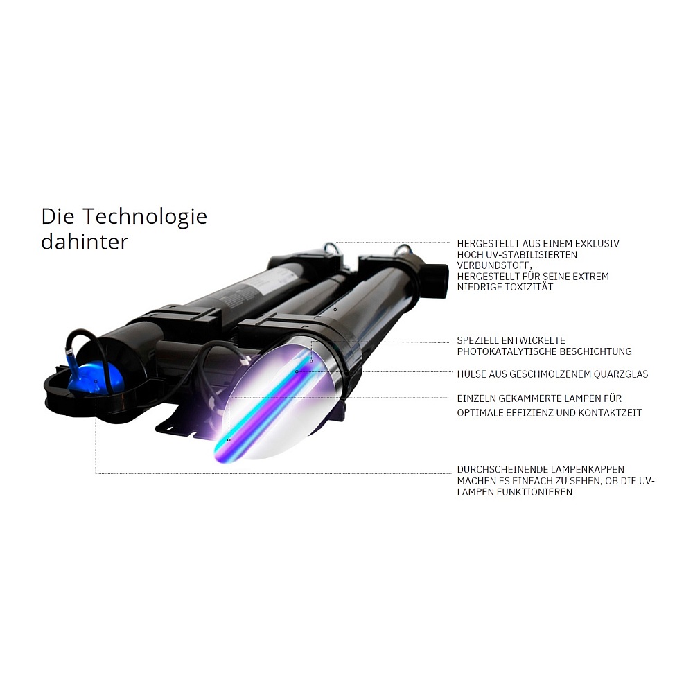 - LET OP: dit product zendt UV-C-straling uit! Stel uw ogen en huid niet bloot aan het onbeveiligde product! Volg de installatie-instructies en/of de gebruikershandleiding. Niet geschikt voor algemene verlichting.