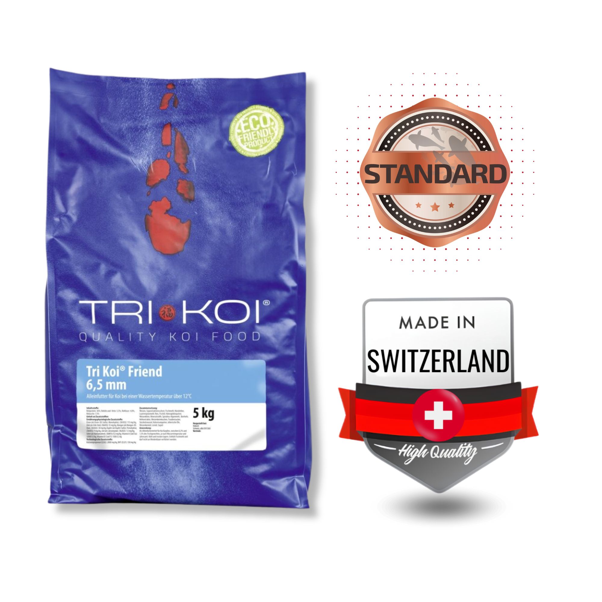 Tri Koi® Friend staat voor ons voordelige instapvoer. Geïnspireerd door de beroemde naamgever hebben we destijds een eenvoudig voer voor de kleine portemonnee laten produceren. De kwaliteit van deze samenstelling is met de overstap naar Hokovit nog eens aanzienlijk verbeterd. Sindsdien kunnen vijverbezitters die minder willen uitgeven aan koi-voer, terugvallen op een voer dat qua prijs-kwaliteitverhouding onverslaanbaar is in de branche. Koop geen goedkoop voer dat de halve wereld heeft moeten afreizen.