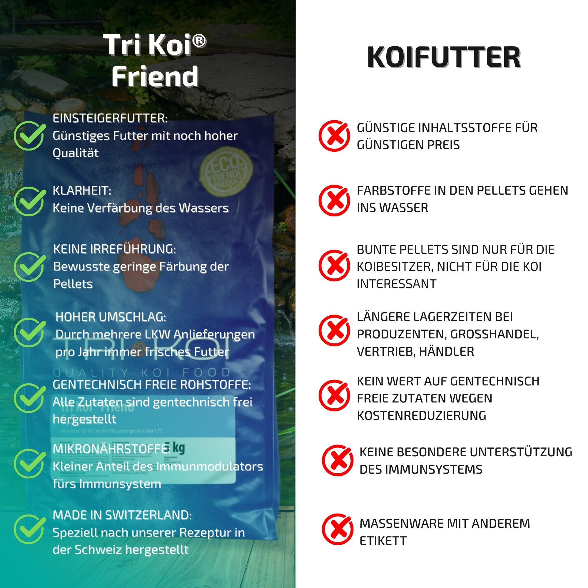 Vanwege ons hoge verbruik ontvangt u ons Tri Koi®-voer Friend altijd absoluut vers.