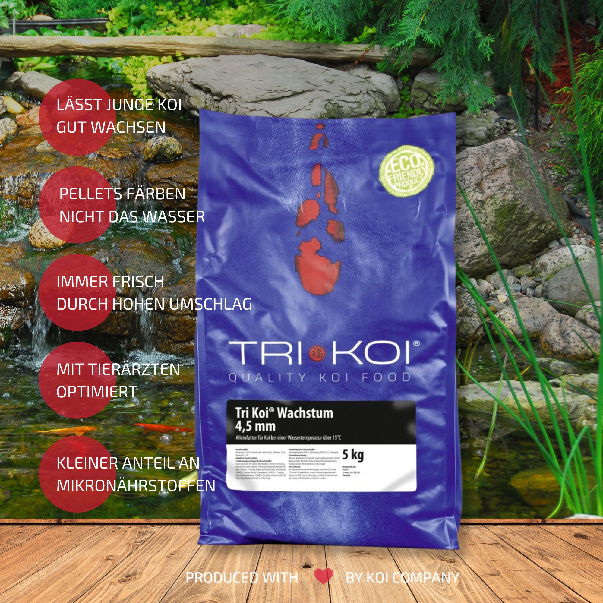 Vanwege ons hoge verbruik ontvangt u ons Tri Koi®-voer Groei altijd absoluut vers.