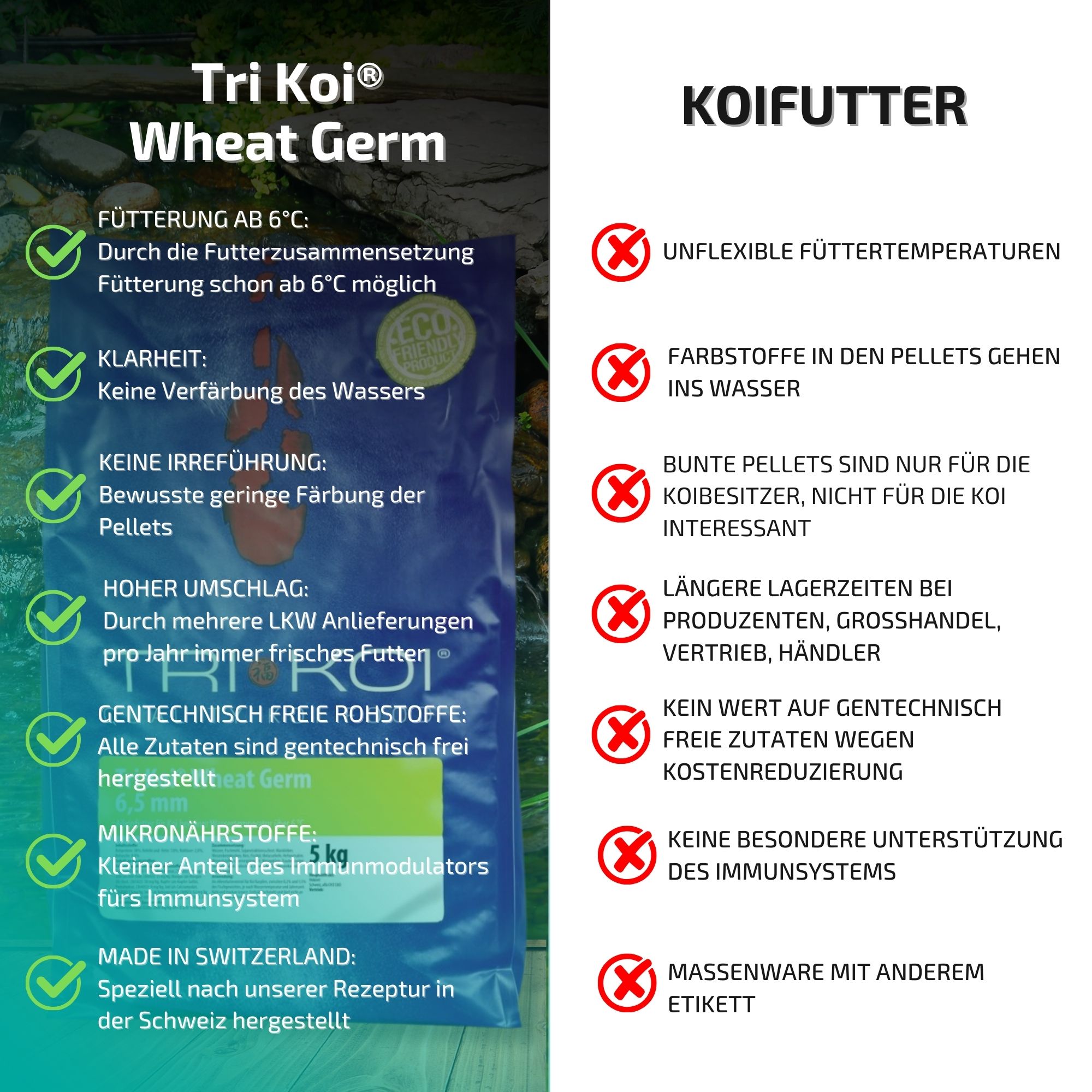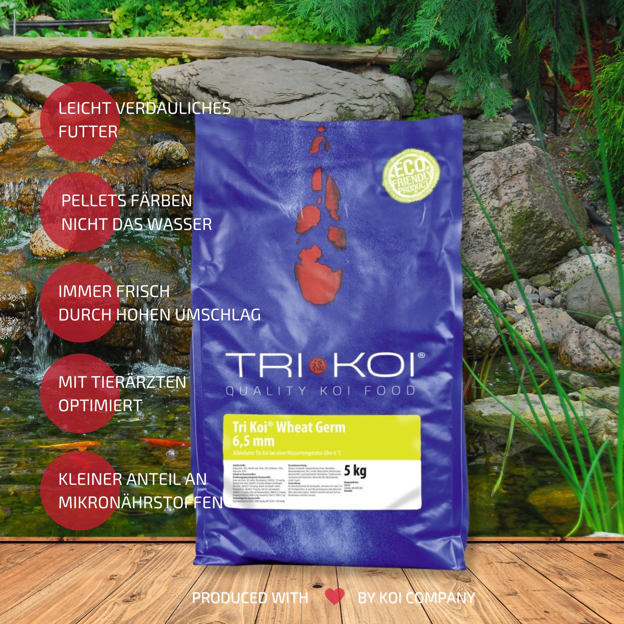 Vanwege ons hoge verbruik krijgt u ons Tri Koi®-voer Wheat Germ altijd absoluut vers.