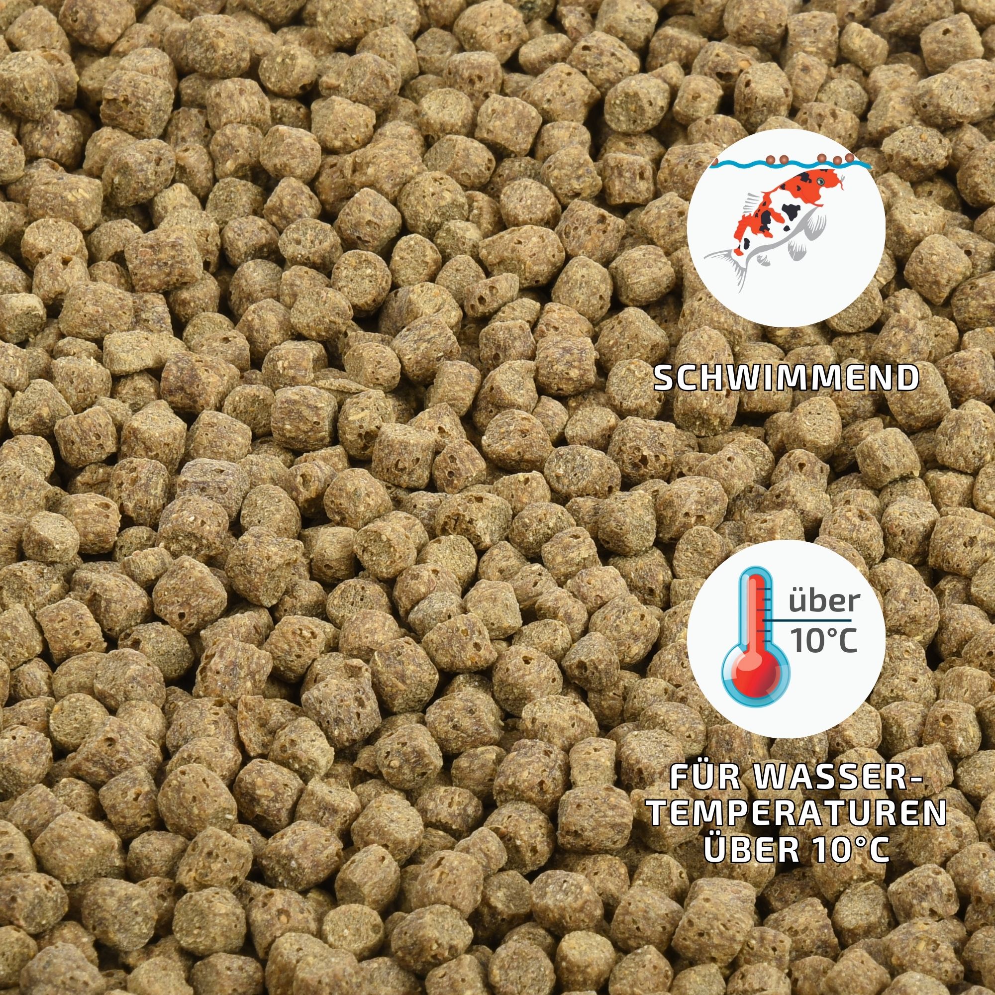 Dit voer bevat geen kunstmatige kleurstoffen. Daarom is dit koi-voer aanzienlijk minder kleurrijk dan vergelijkbare voeders. Dit voorkomt echter verkleuring van het water. Kleurstoffen worden aan het voer toegevoegd, zodat de koi-houder tevreden is en denkt dat hij een uitgebalanceerd voer geeft. Voor de koi maken de kleuren niet uit. Zij zien het verschil niet. En uw water is blij als deze niet in het voer zitten, want de kleurstoffen lossen na verloop van tijd op uit de pellets en kleuren alleen het water.