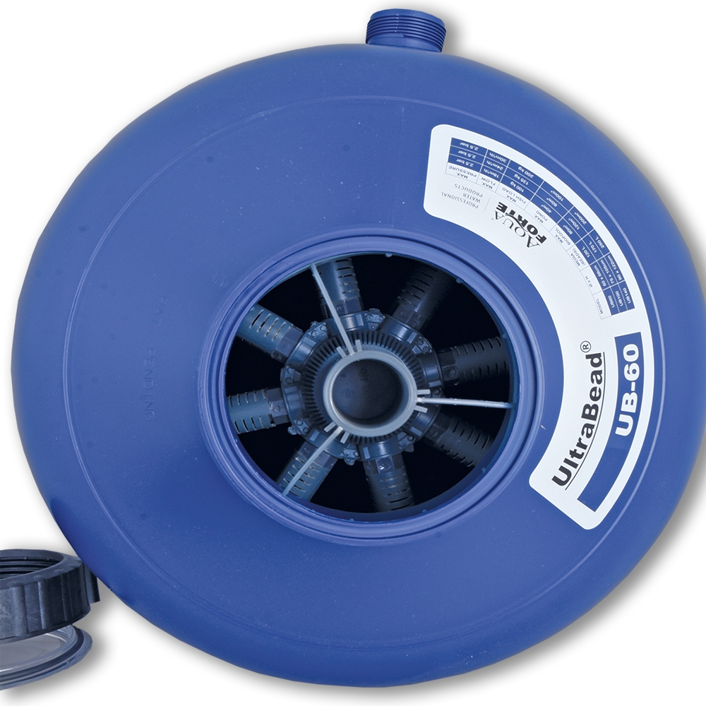 AquaForte introduceert het nieuwe Ultrabead-filter! Na meer dan 17 succesvolle jaren volgt er nu een nieuwe generatie van Europa's populairste kralenfilter. Kralenfilters zijn gesloten (druk)filters die gevuld zijn met een paar miljoen plastic kralen. De kralen zorgen voor zowel mechanische als biologische filtering. Naarmate het filter langer in gebruik is, wordt ook de biofilm rond de kralen dikker, waardoor ook zeer fijne vuildeeltjes worden tegengehouden (tot 10 micron!). Voor de keuze van de pomp kunt u uitgaan van een tegendruk van 3 m waterkolom. Onze eigen verkoopinstallatie is ook uitgerust met kralenfilters.