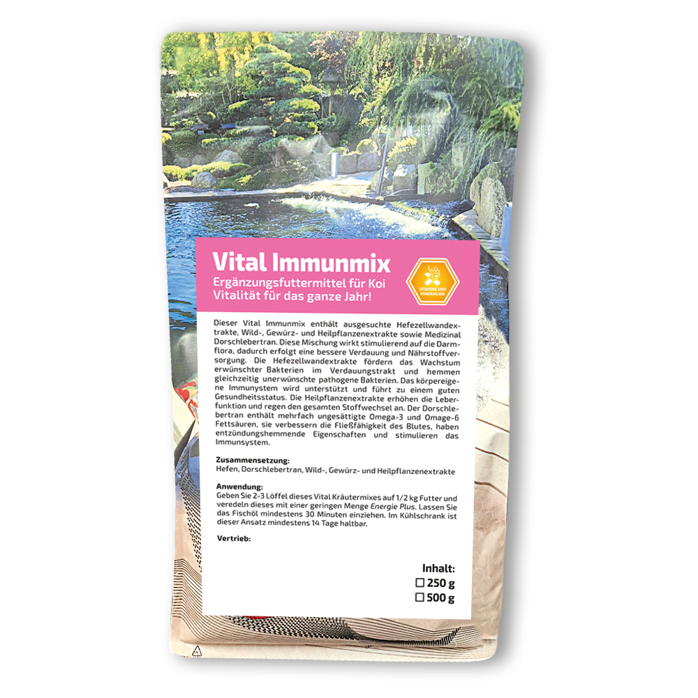 Voeg 2-3 theelepels van dit immuunmengsel toe aan ½ kg voer en verrijk dit met een kleine hoeveelheid Energie Plus. Laat de visolie minstens 30 minuten intrekken. In de koelkast is dit mengsel minstens 14 dagen houdbaar.
