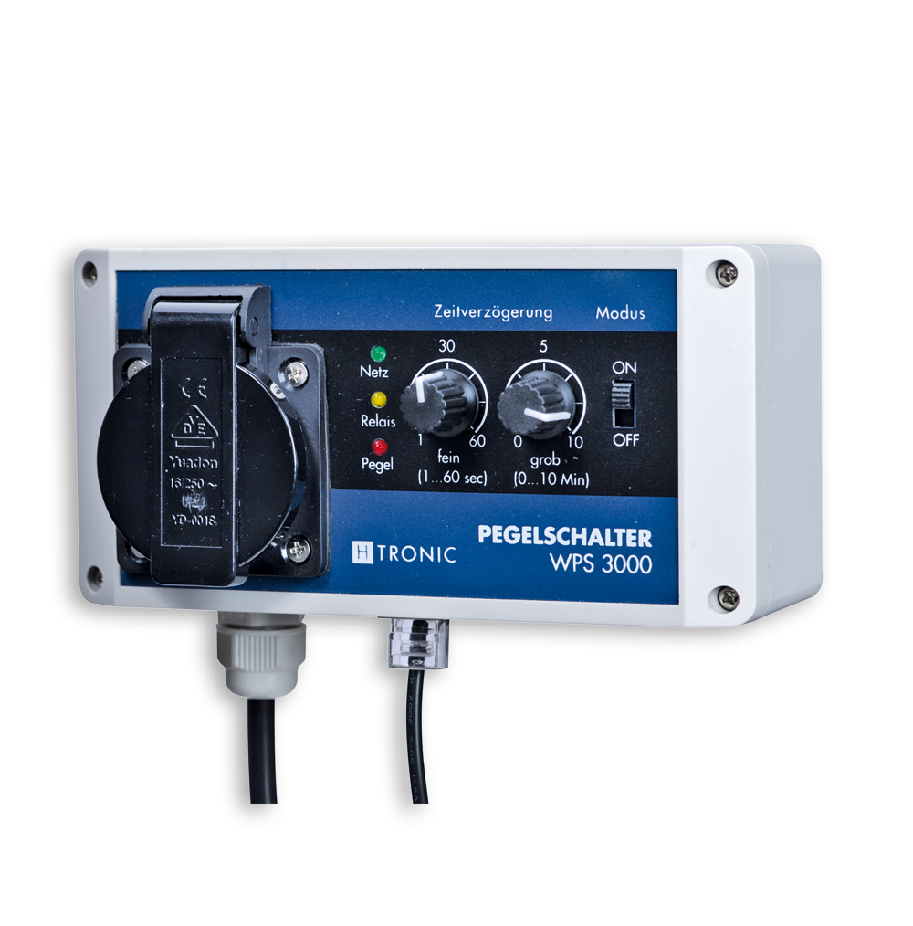 De WPS 3000 is geschikt voor alle opslagtanks van beton, kunststof of metaal en is snel te installeren, omdat alle aansluitingen insteekbaar zijn. Het schakelpunt bij willekeurige waterstanden is vrij te kiezen. De besturingseenheid wordt ondersteund door een robuuste sensor. Door het wegvallen van bewegende vlotterschakelaars werkt de WPS 3000 absoluut storingsvrij. LED-lampjes voor "net", "peil" en "rel. aan" geven in één oogopslag de huidige status weer. Met twee potentiometers kan een nalooptijd van de pomp van 0...10 min worden ingesteld om te voorkomen dat het relais bij golvend water permanent heen en weer schakelt.