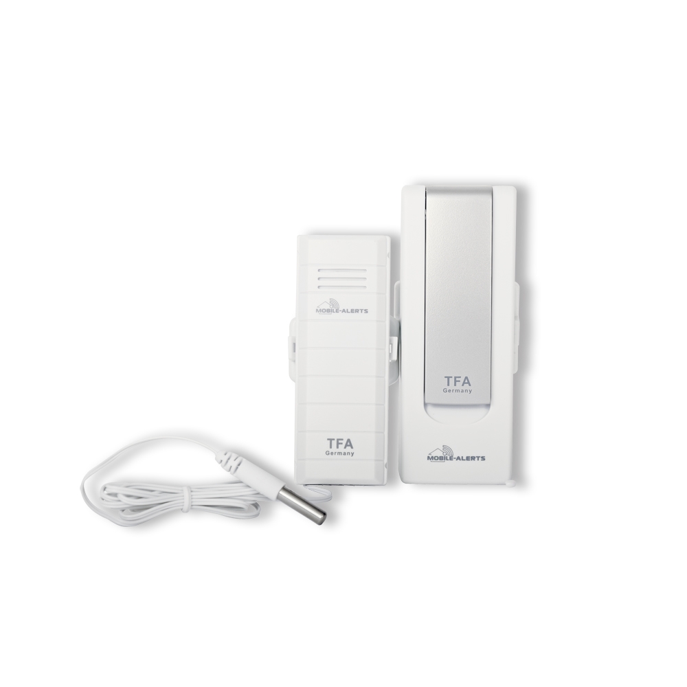 Met de thermo-hygrozender met zwembadzender breidt u uw WeatherHub-starterset uit. Hiermee krijgt u een extra temperatuurzender die ook de luchtvochtigheid meet (binnen of buiten - bereik 100 m). Een zwembadzender meet de watertemperatuur (bereik 25 m). Ook voor deze zenders kunnen via de app alarmgrenzen worden ingesteld.