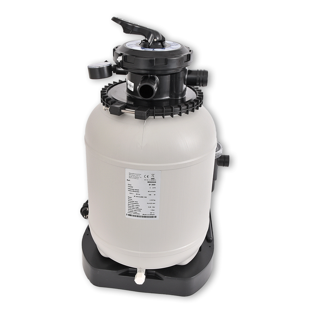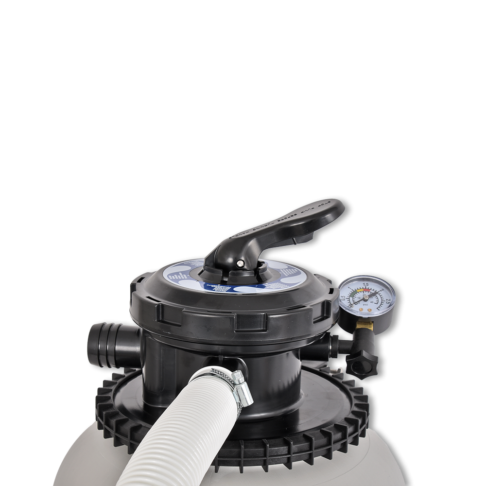 Deze serie zwembadfilters bestaat uit een PE-filter, een 6-wegsklep, een zelfaanzuigende zwembadpomp met voorfilter en verbindingsslangen.