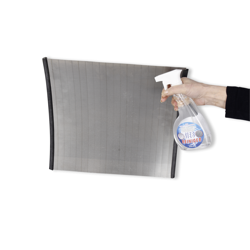 De nieuwe zeefreiniger in de handige spuitfles kan hier gericht worden gebruikt om vuil en kalk effectief te verwijderen. Bij sterke vervuiling moet een zachte borstel worden gebruikt. Maandelijks gebruik wordt aanbevolen om verkalking van de zeef te voorkomen.