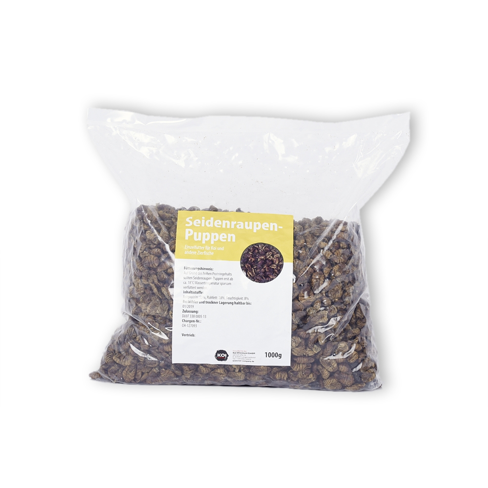 Füttern wir bei passender Temperatur vielleicht 1x die Woche, so daß es immer eine Besonderheit bleibt. Unseren Koi scheinen dieses Seidenraupen besser zu schmecken, als die, die man im Zoo/Tierfachgeschäft bekommt.