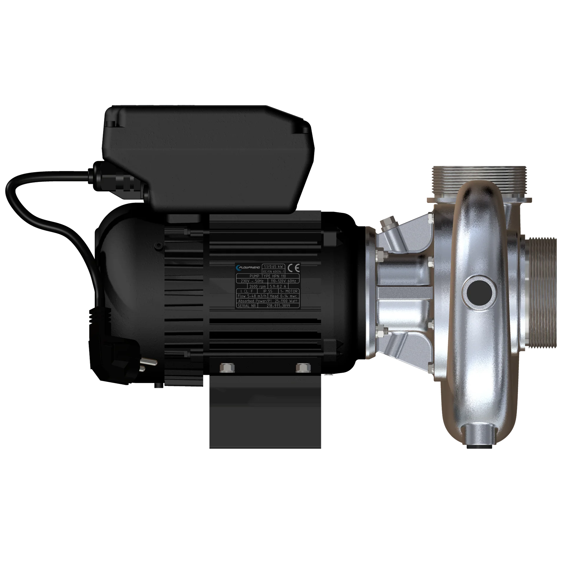 Met de FlowFriend koopt u een permanente magneetmotor die speciaal is uitgerust voor grotere hoeveelheden water in het transportbereik van 0 - 5 meter met een ongelooflijk rendement. Ook bij lage toerentallen is de pomp zeer efficiënt. Hij is regelbaar in het toerentalbereik van 600 tot 2550 tpm bij een stroomverbruik van 30 - 750 watt. Bij correct gebruik verdient deze pomp zichzelf in zeer korte tijd terug door het lage stroomverbruik.