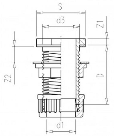 | (d1) Binnendiameter onderaan | (d3) Binnendiameter bovenaan | Z1 | Z2 | D | S |