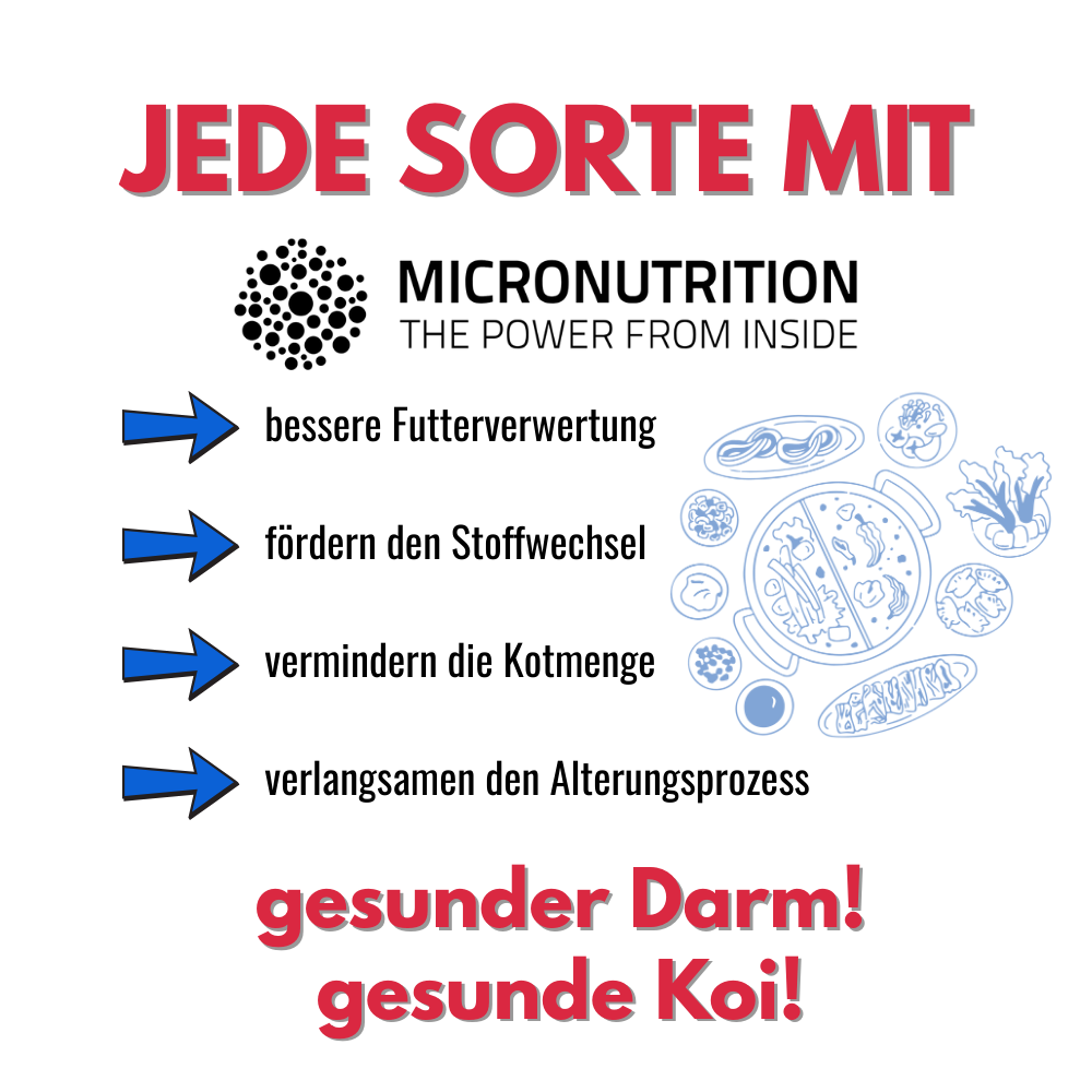 Als u zich verdiept in de fabrikant (Alpha CH 31265), komt u onvermijdelijk ook het exclusieve micronutriëntencomplex AQUACULTURE GUARD® tegen. Deze stof zit in al onze Tri Koi®-voeders van Hokovit, evenals het exclusieve kruidenmengsel uit Kenko® Extra.
